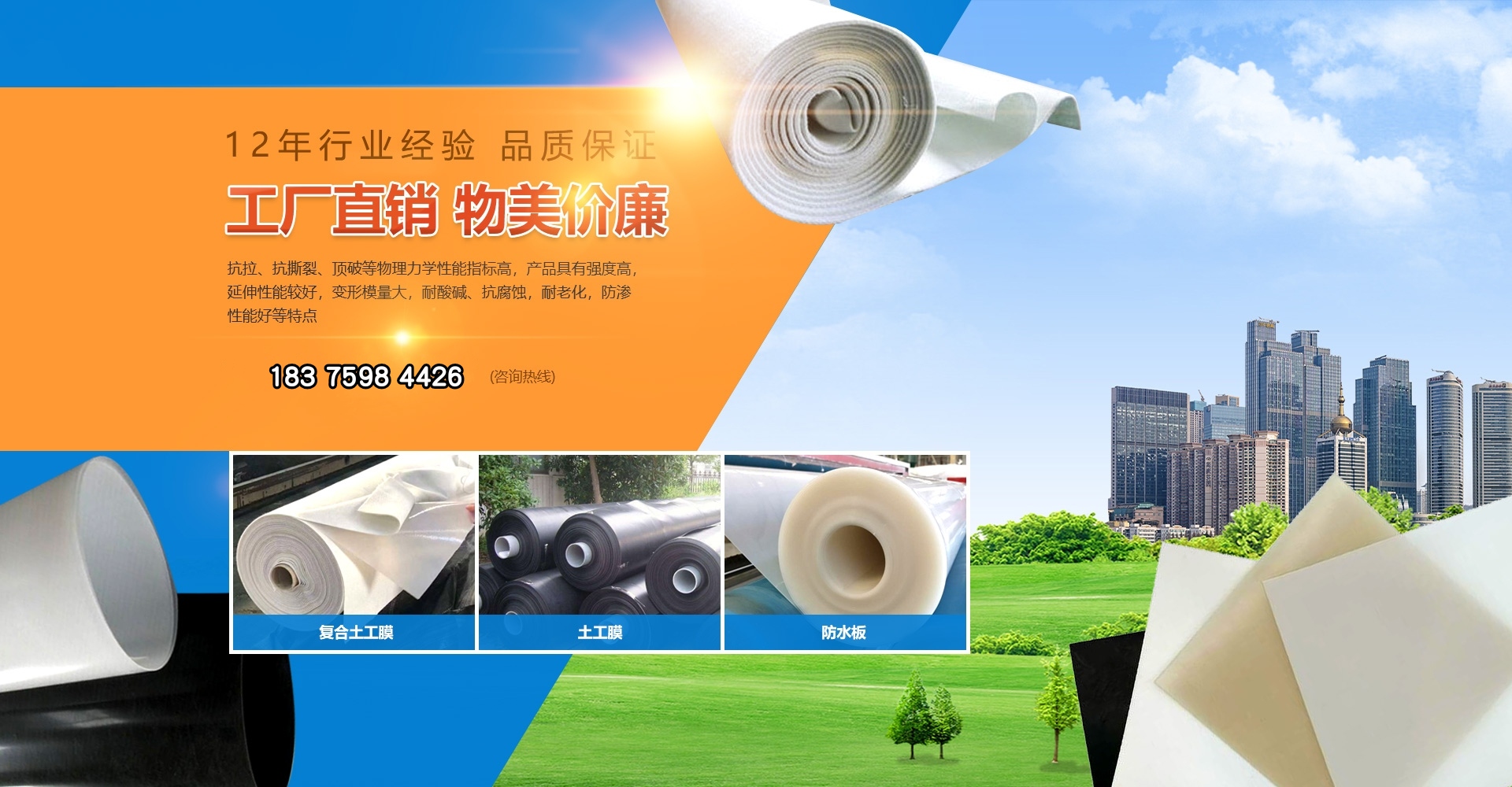 復(fù)合土工膜分為一布一膜和兩布一膜,寬幅4-6m,重量為200—1500g/平方米,抗拉、抗撕裂、頂破等物理力學(xué)性能指標(biāo)高,產(chǎn)品具有強(qiáng)度高,延伸性能較好,變形模量大,耐酸堿、抗腐蝕,耐老化,防滲性能好等特點(diǎn)。能滿足水利、市政、建筑、交通,地鐵、隧道、工程建設(shè)中的防滲、隔離、補(bǔ)強(qiáng)、防裂加固等土木工程需要。常用于堤壩、排水溝渠的防滲處理,以及廢料場(chǎng)的防污處理。