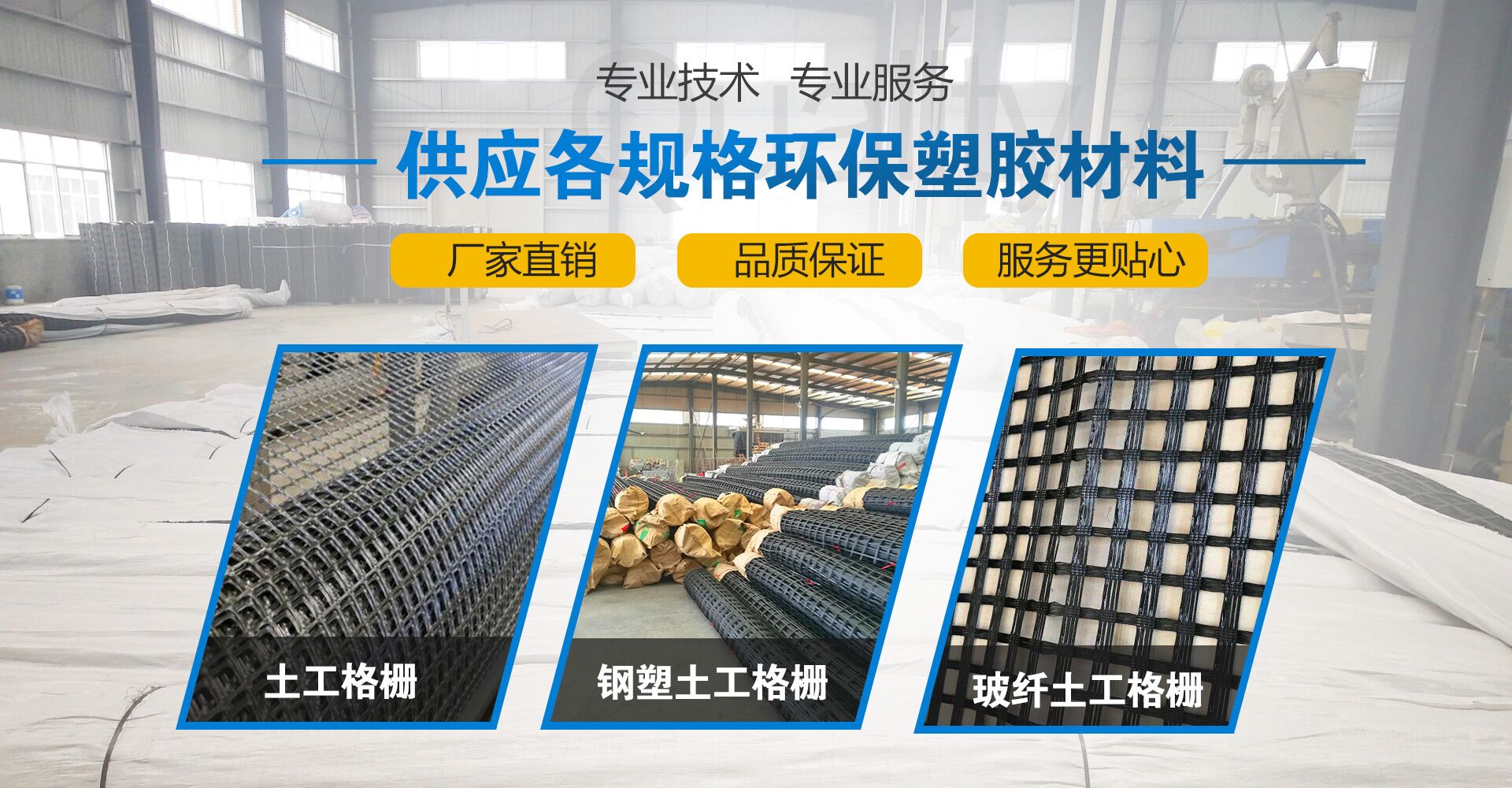 鋼塑土工格柵以高強(qiáng)鋼絲(或其他纖維),經(jīng)特殊處理,與聚乙烯(PE),并添加其他助劑,通過(guò)擠出使之成為復(fù)合型高強(qiáng)抗拉條帶,且表面有粗糙壓紋,則為高強(qiáng)加筋土工帶。由此單帶,經(jīng)縱、橫按一定間距編制或夾合排列,采用特殊強(qiáng)化粘接的熔焊技術(shù)焊接其交接點(diǎn)而成型,則為加筋土工格柵。
